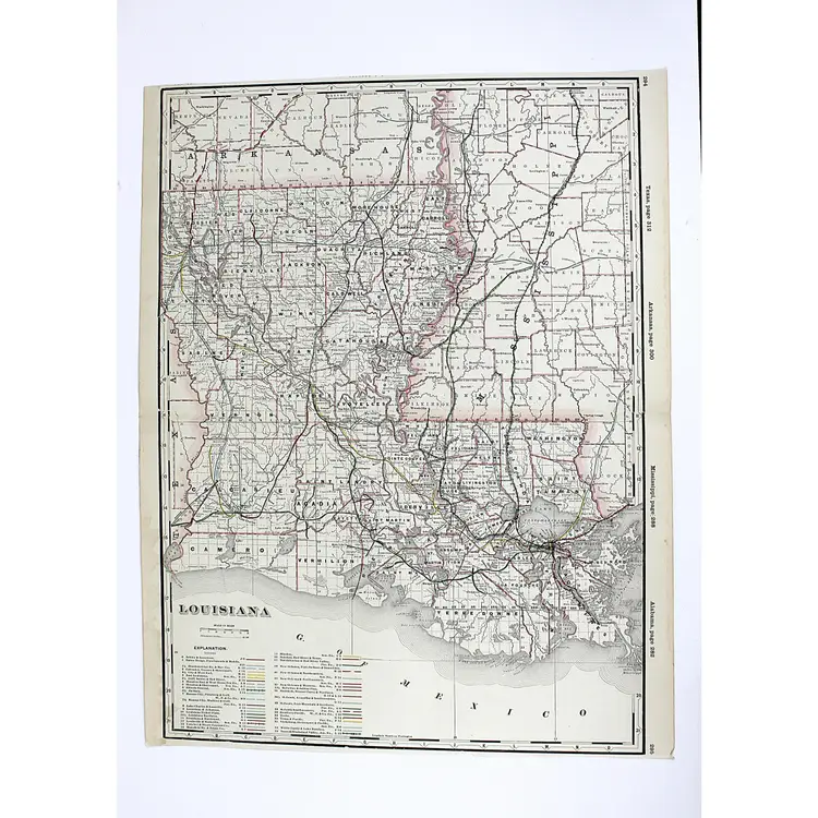 Railroad Map of Louisiana circa 1900 Large 22 1/2 x 17 1/2 Full Color Lithograph