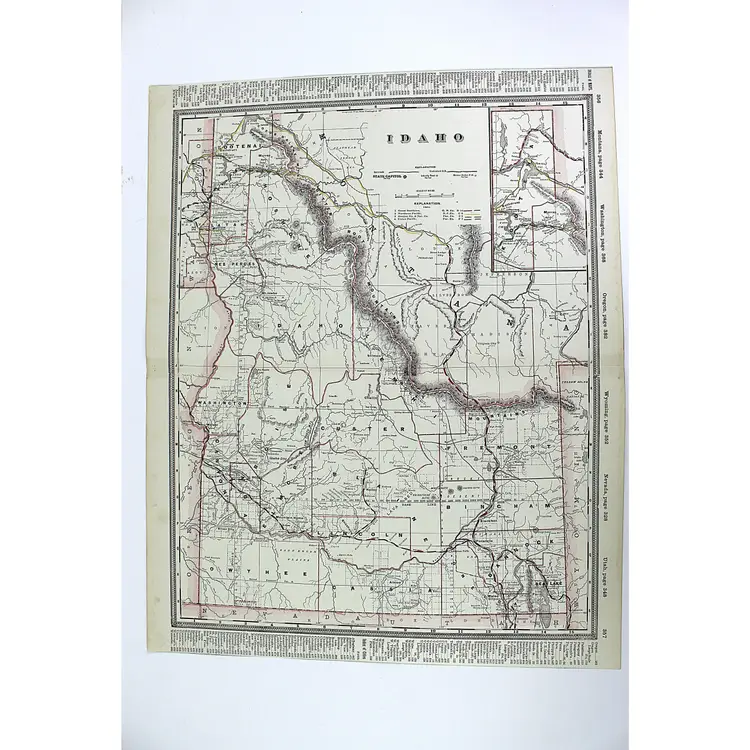 Railroad Map of Idaho circa 1900 Large 22 1/2 x 17 1/2 Full Color Lithograph