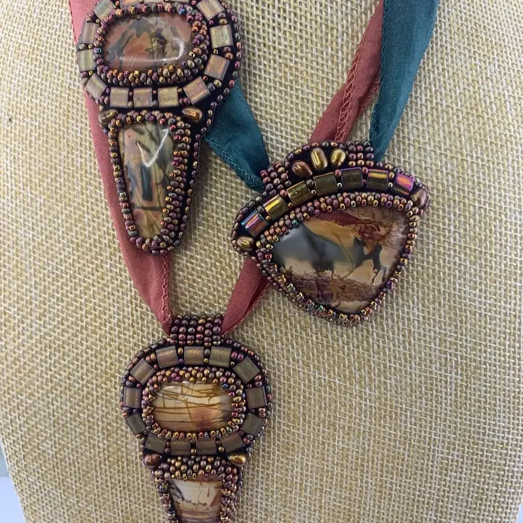 Red Creek Jasper Bead Embroidered Pendant Necklace
