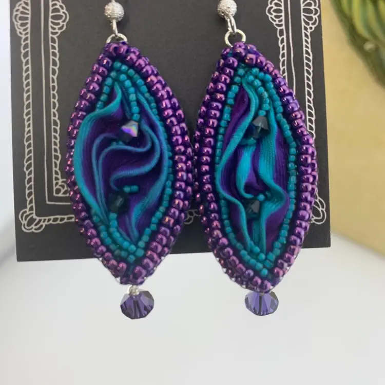 Shibori Bead Embroidered Earrings