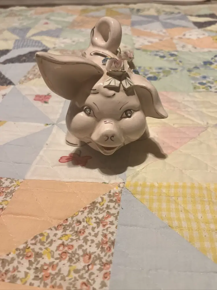 Vintage Piggy Bank 4-1/2" x 5-1/2" With Raised Flowers, Missing It’s Stopper
