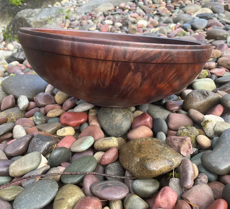 I started turning wood in August of 2022 and haven't looked back. I found my passion. I use only timber that has had to come down for one reason or another. I don't take trees down just to make my bowls and things. I care about our resources and try to be a good steward. I start with a log and take it to the final product. From log to bowl it takes a year or more. After processing the timber into blanks, it takes about 12 months for it to dry and be ready for its final form.