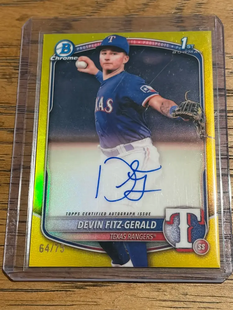Devin Fitz-Gerald 2025 Bowman Chrome Yellow Refractor Auto /75 Texas Rangers