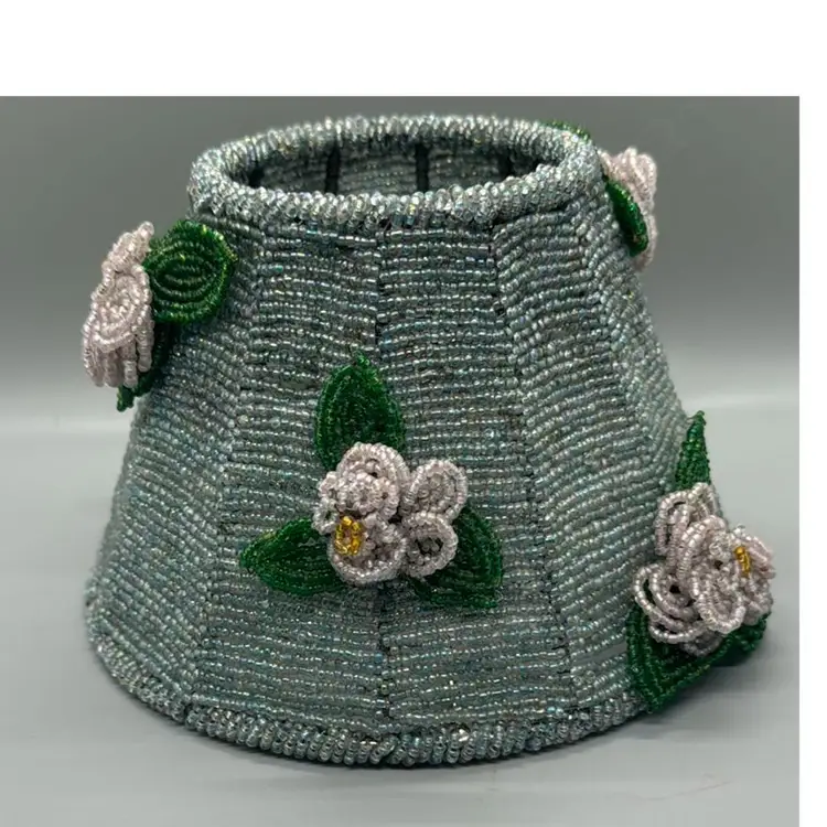 Vintage Glass Bead Lampshade Candle Topper / Floral Beaded Candle Top