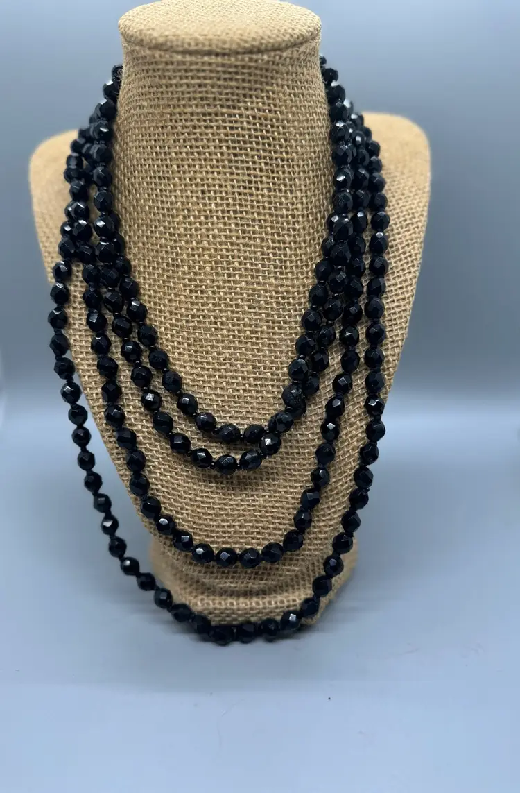 Vintage Made in Austria Black Glass Beaded Super Long Necklace Pair