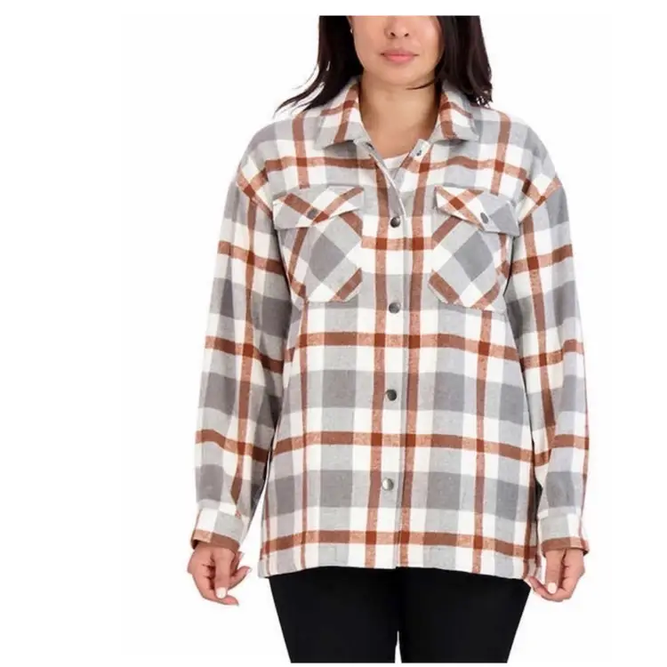 (NWT) HFX Women’s Plaid Shirt Jacket in Gray/Brown, Size: Medium