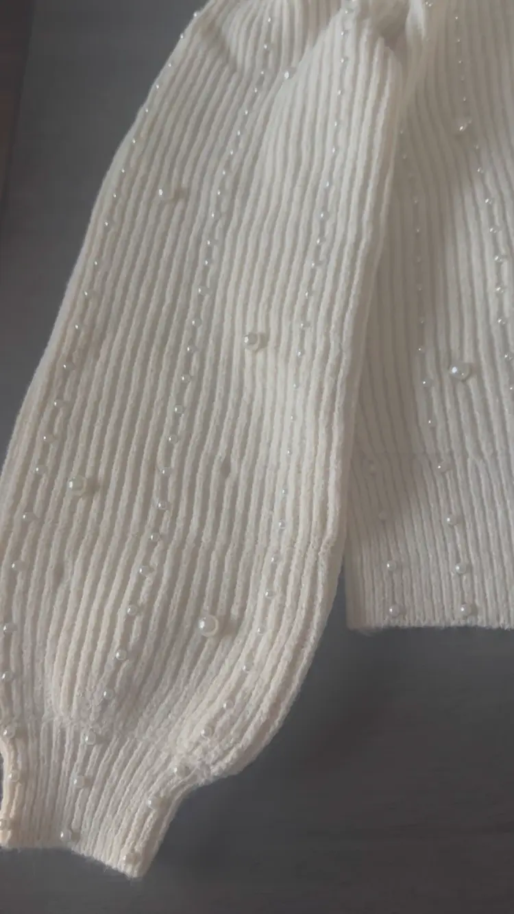 NEW! POL Pearl Detail Sweater In Vanilla Cream Size S