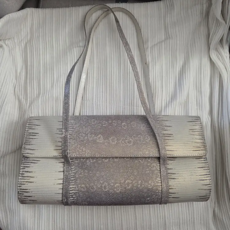 VTG Stuart Weitzman White Silver Embossed Leather Shoulder Bag Made in Spain