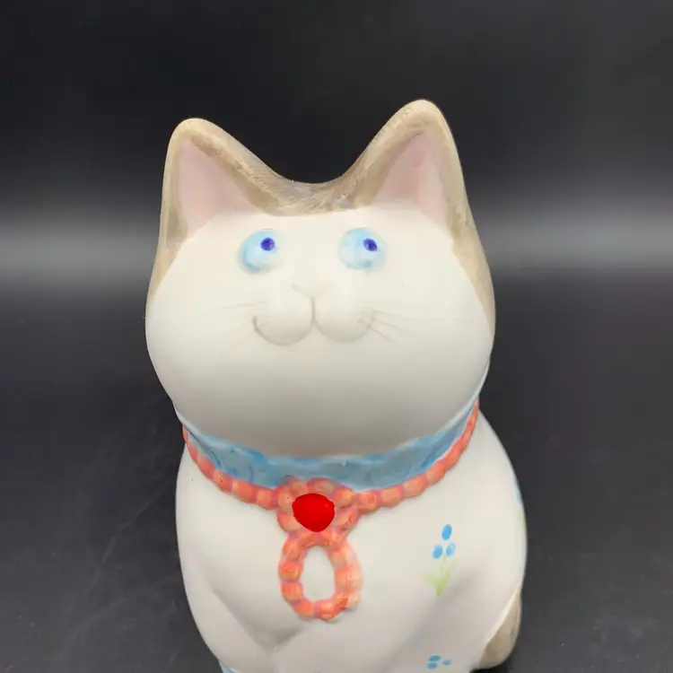 Takahashi Kitty Cat Planter blue flowers pink collar