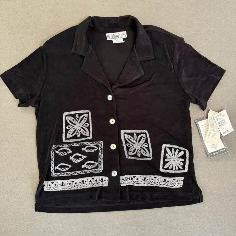 Vintage Nina Piccalino Petites Black Button Up Shirt Blouse Women's Size 10P NWT