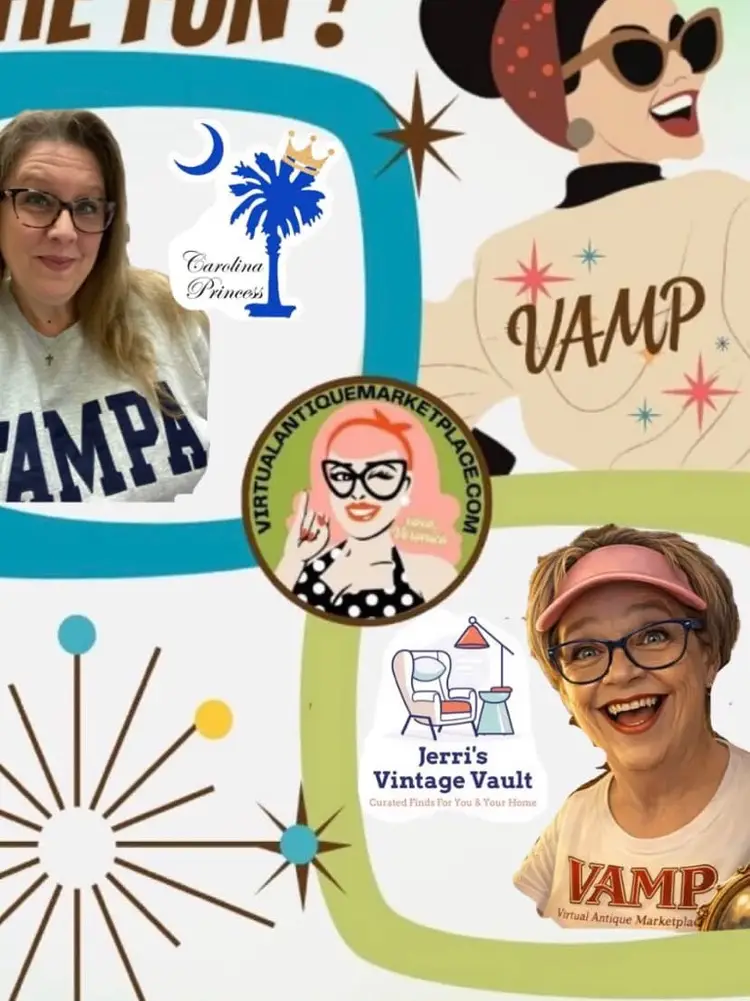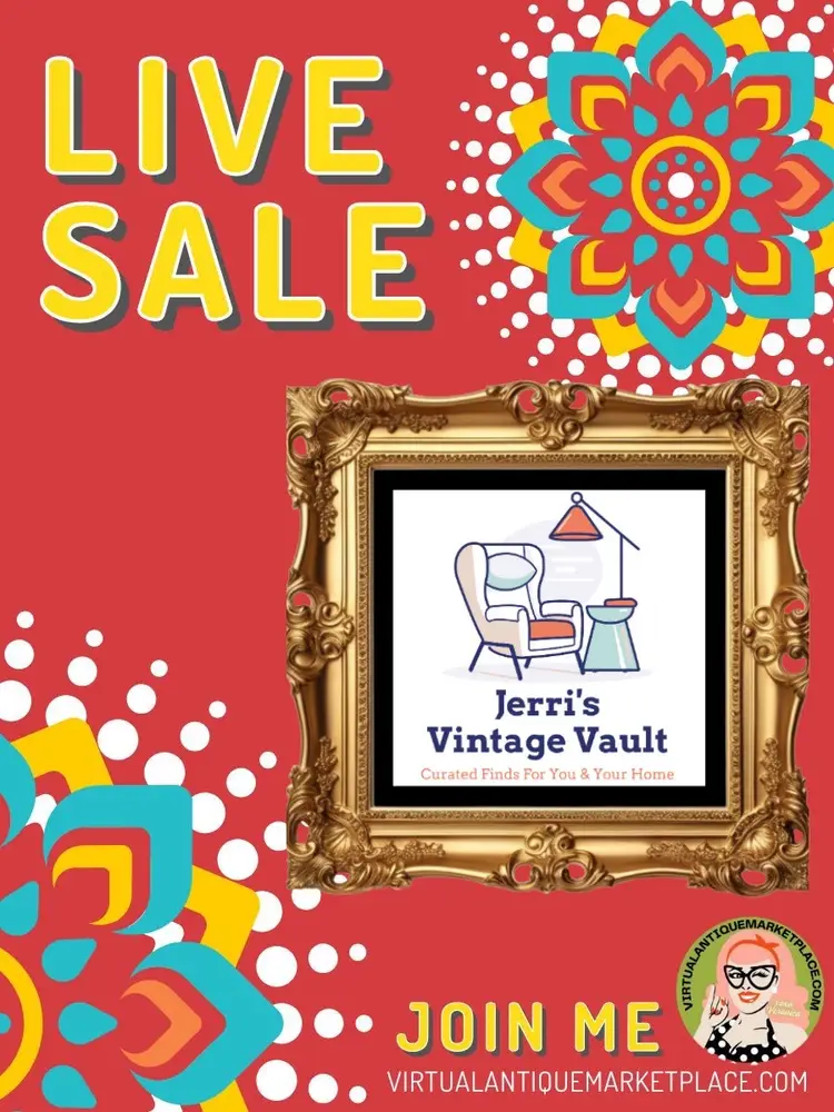 Hey hey yall. My live sales here on VAMP are every Thursday at 6:30 pm eastern. Please join me. Hi! Im Jerri. You might know me as 1/2 of vintage and vino on YT and here on VAMP. Im recovering from an illness that caused me to have to take a long break from my vintage procurement and sales. Additionally, we moved from Arizona to Indiana. Now, Im feeling better and im all settled into a new home and ready to get back to business. The other half of vintage and vino (Tim) has decided to bow out of the biz. I hope you’ll find exactly what you’re looking for here on VAMP.