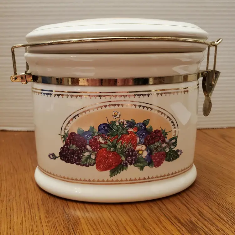 Vintage Fruit Design Ceramic Canister Knotts Berry Farm