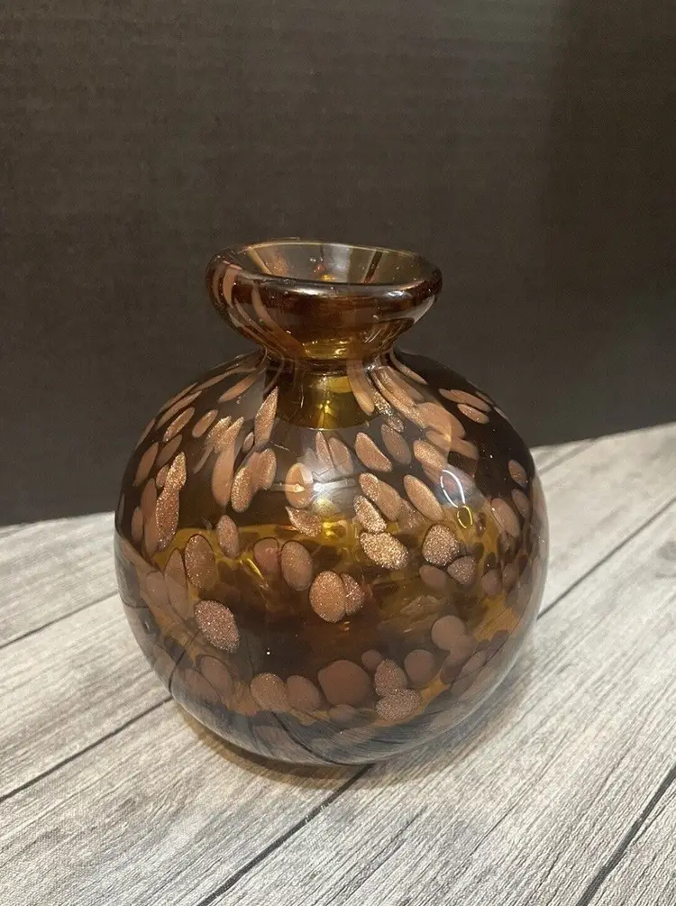 Vintage Handblown Vase Tortoise Shell with Swirling Spots & Sparkles