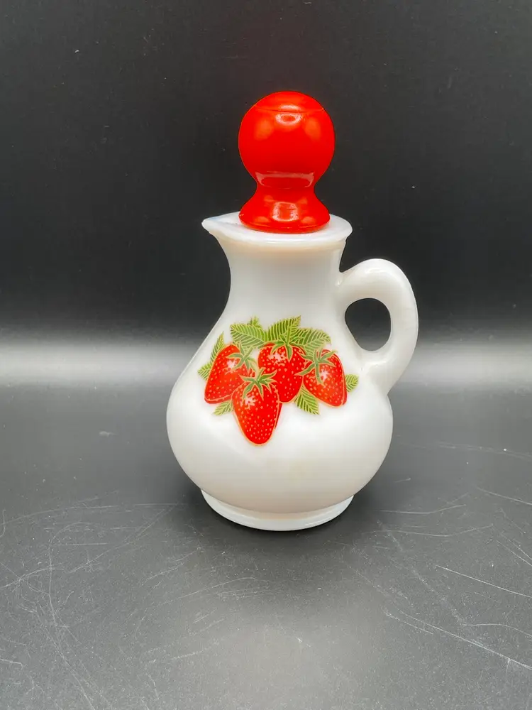 Vintage Avon Milk Glass Strawberries & Cream Bath Foam Decanter, Empty