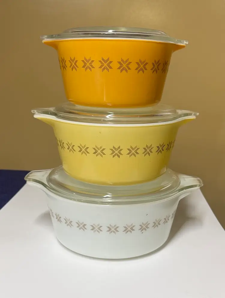 Pyrex Town & Country 473, 474 & 475 Casserole Dishes set all with Lids