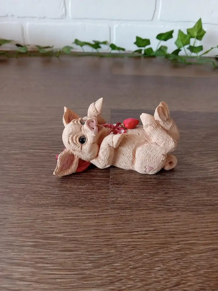 Vintage Sweetheart Pig Piggy with Red Scarf with Hearts and a Heart