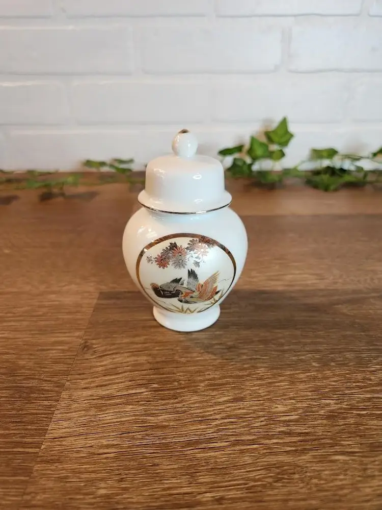Vintage Japan Fine China Ginger Jar 4.5" Tall with Florals and Birds
