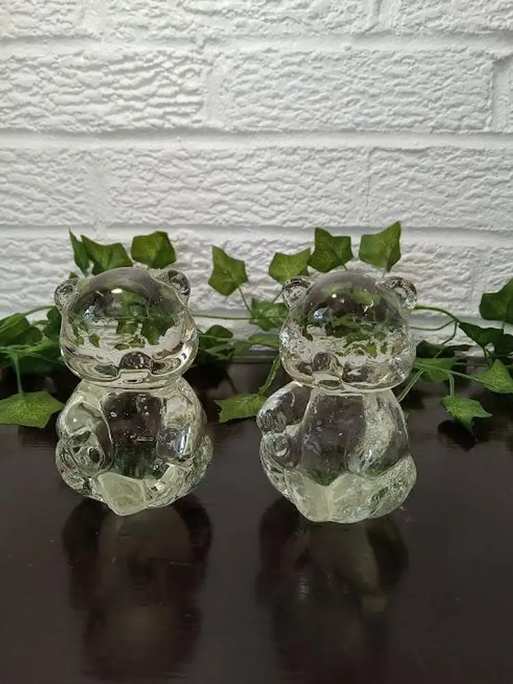 Set of 2 3.5" Clear Glass Teddy Bears Figurines Paperweights some bruising
