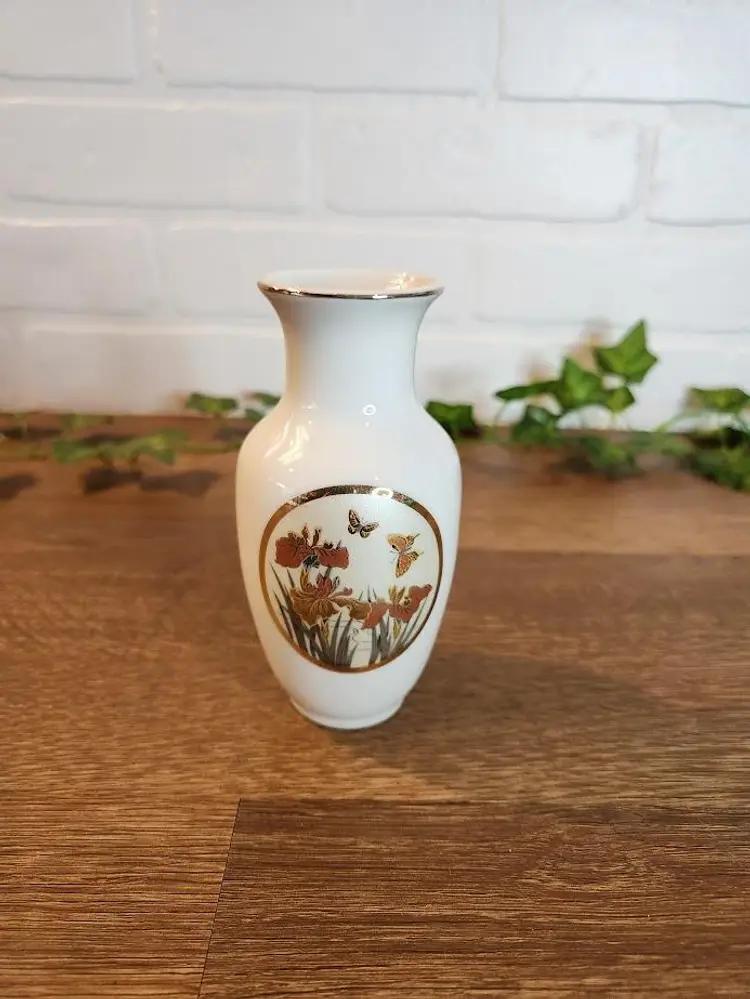 Vintage Japan Fine China Vase 5.25" Tall with Florals and Butterflies