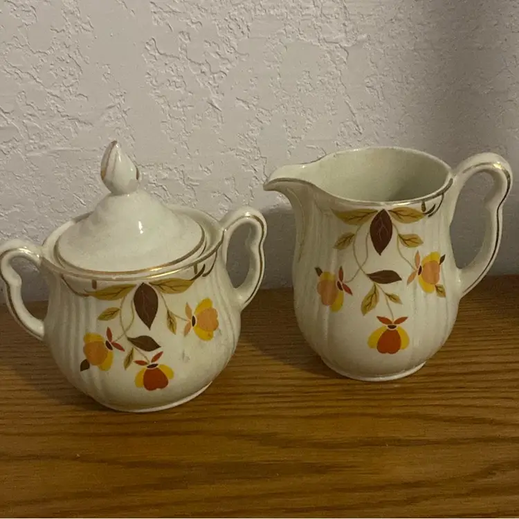 Vintage Hall's Jewel Tea Autumn Leaf Mary Dunbar Rayed Sugar & Creamer