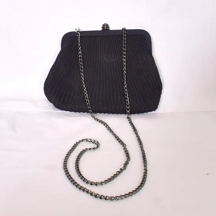Women's Vintage Black Pleated Elegant Evening Bag Pocket Book
