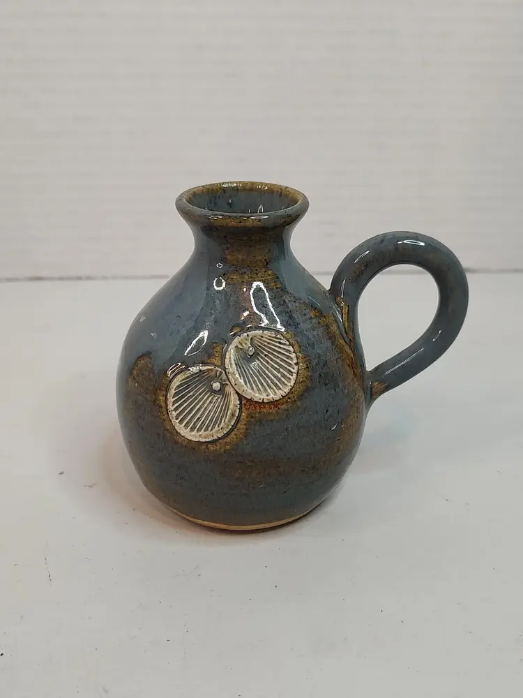 Muriel Muray 1982 Signed Studio Pottery Blue Pitcher Seashells