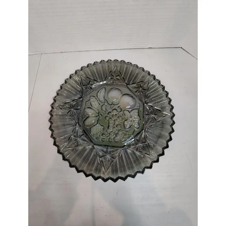 Vintage Federal Glass Pioneer Smoke Carnival Glass Bowl Plate Dish Fruit Sawtooth Edge