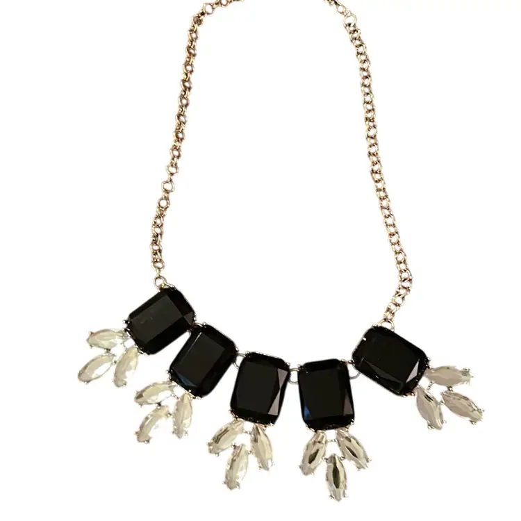Gold Tone Chain Necklace With Black And Clear Rhinestones