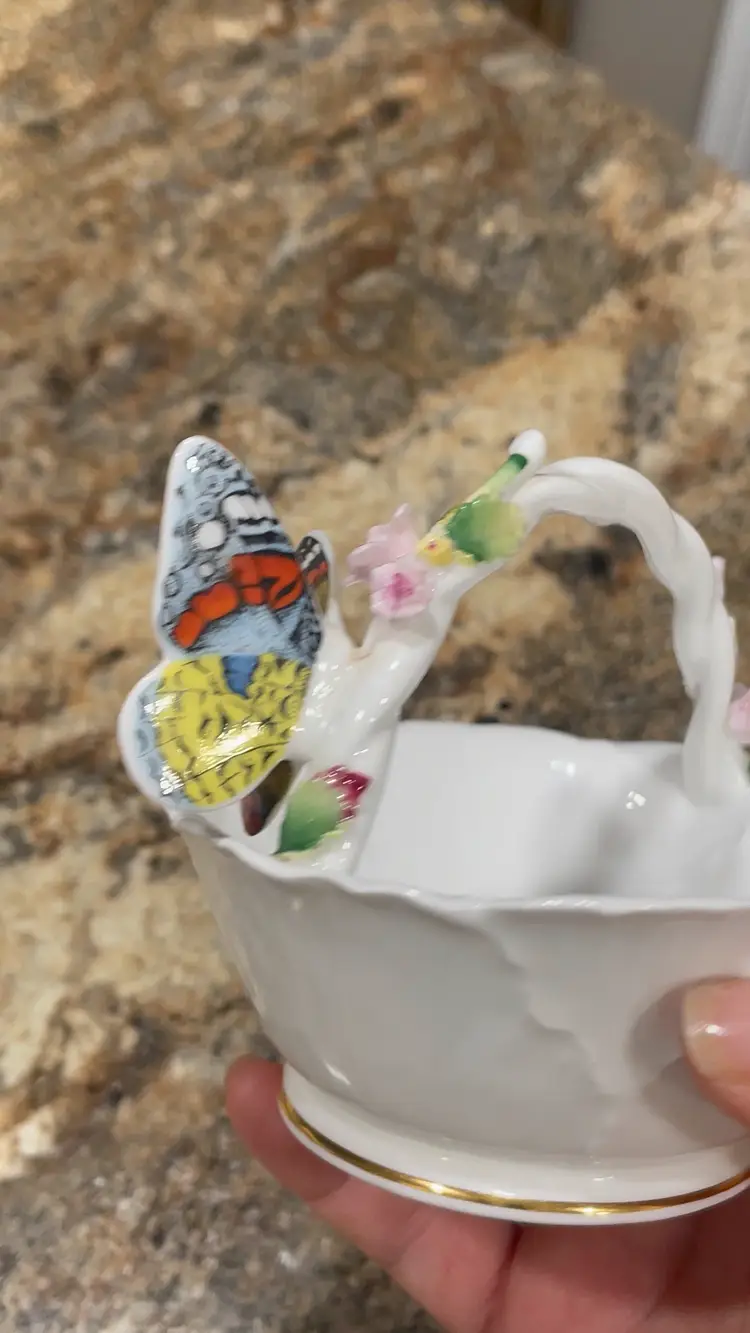 Maruri Masterpiece Bone China Basket with Butterfly Accent