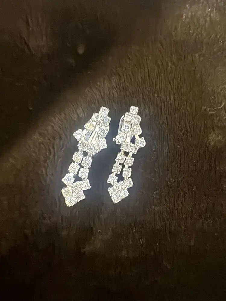 Vintage-style Clip On rhinestone dangle earrings
