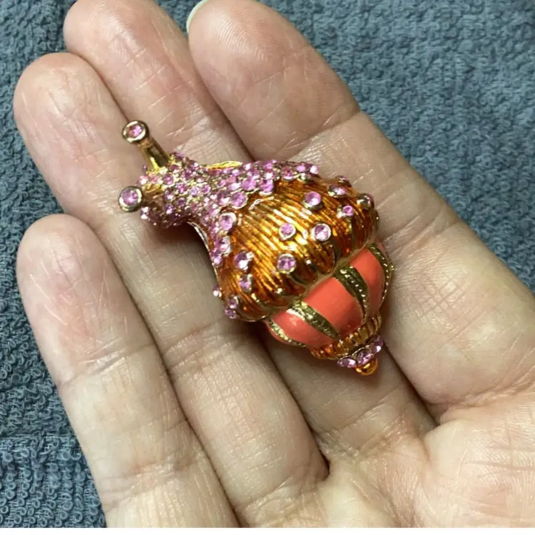 Snail Brooch Pink Rhinestones And Enamel 1 3/4”