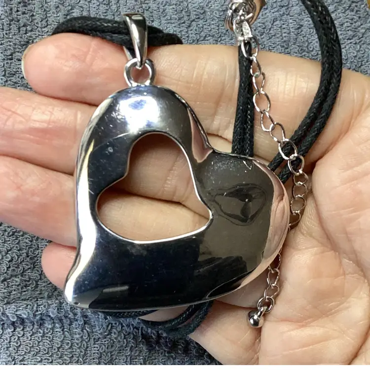 Silver Tone Heart Pendant 15”