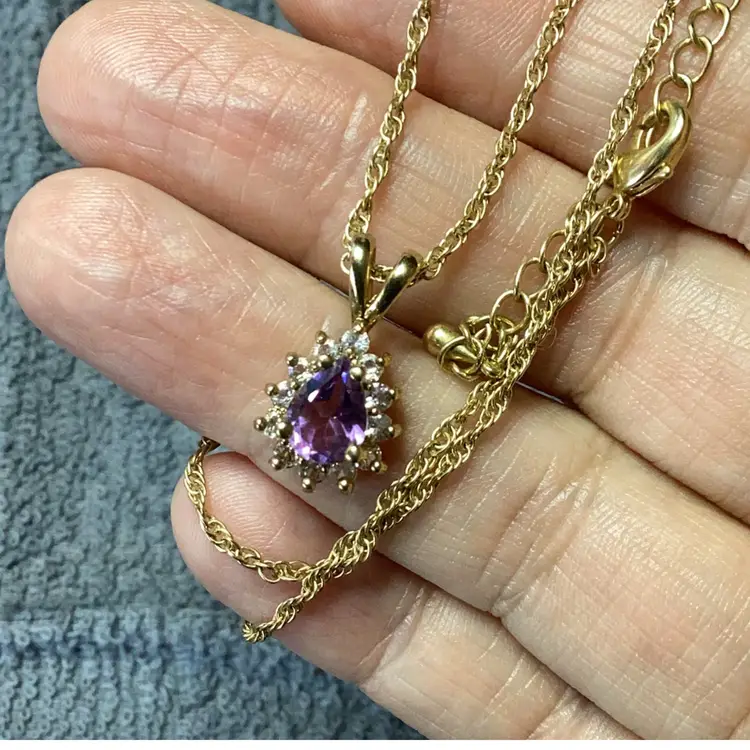 Gold Tone Necklace Amethyst And CZ Pendant 20”