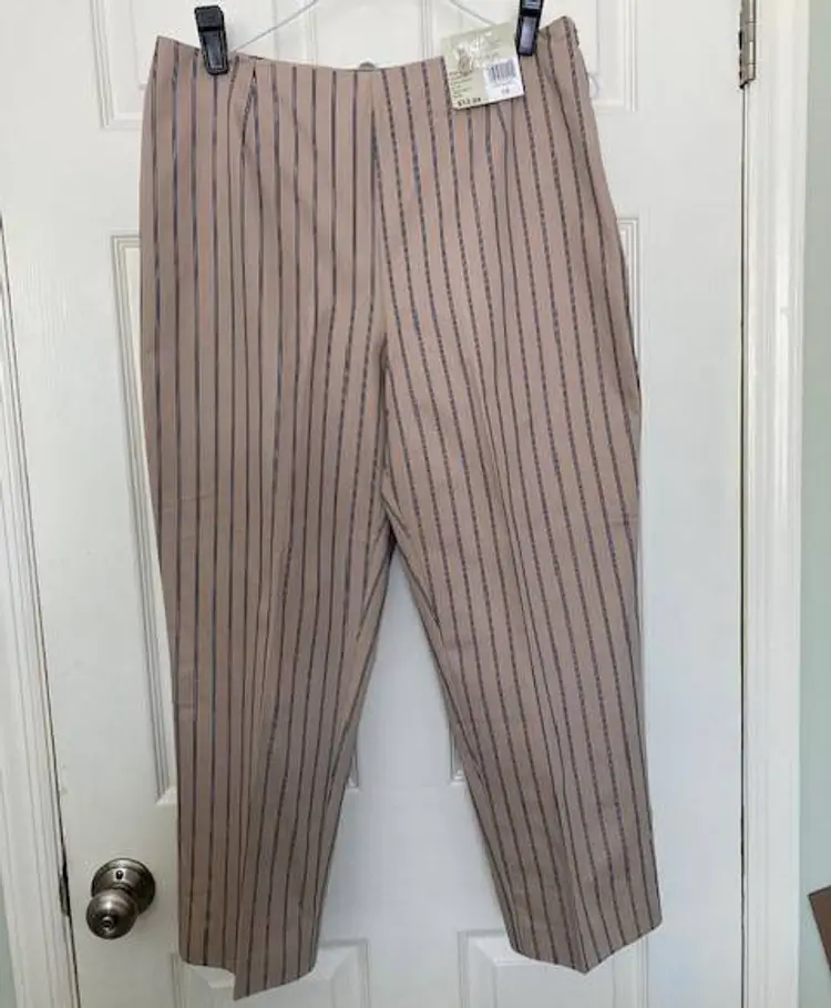 White Stag NWT Women's Crop Pants Khaki/Navy Stripe Size 12