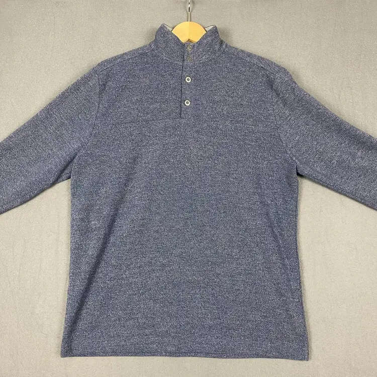 Johnnie O Sweater Men M Heather Blue Henley Pullover Golf Modern Classic Coastal 1354