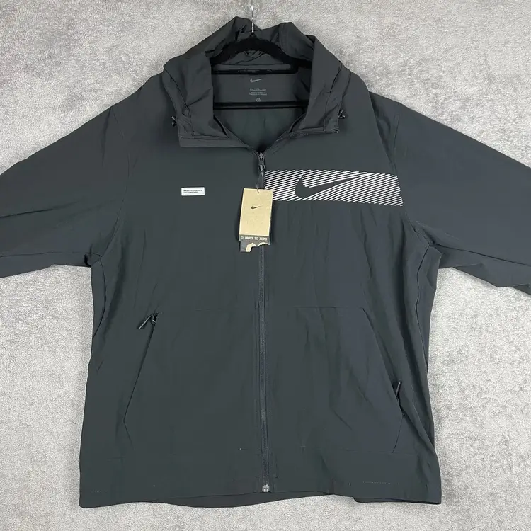 Nike Jacket Mens 2XL Black Running Hooded Full Zip Windbreaker Swoosh 3212