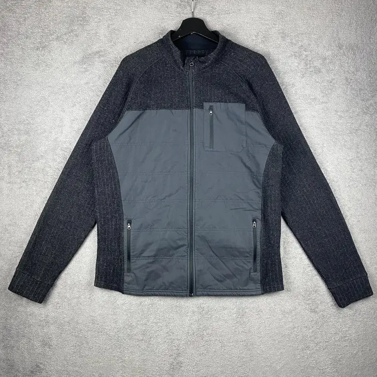 prAna Jacket Mens Extra Large Gray Quilted Panel Wool Blend Full Zip Pockets 3205