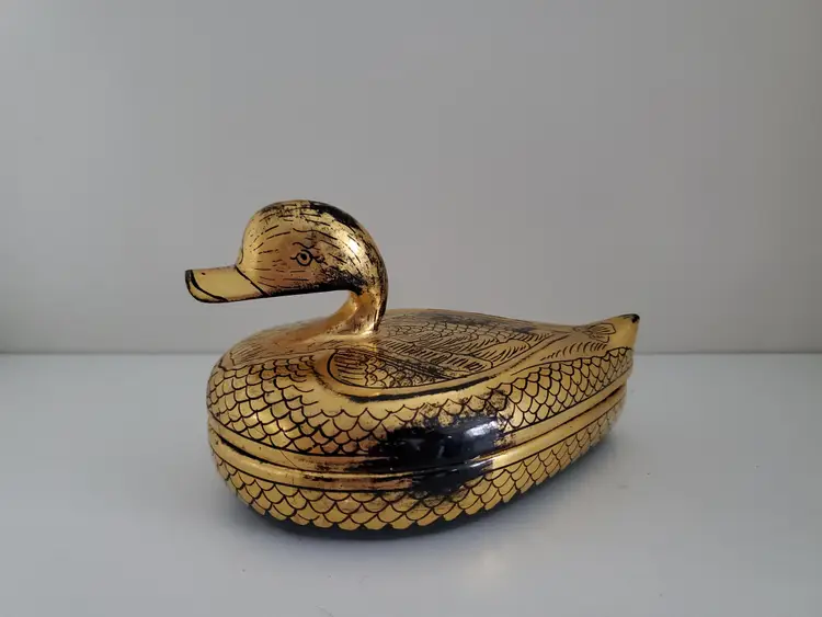 Wooden Trinket Box, Burmese Lacquered Duck Box, Unique Jewelry Box