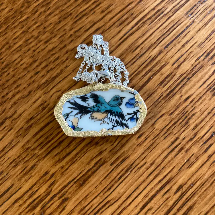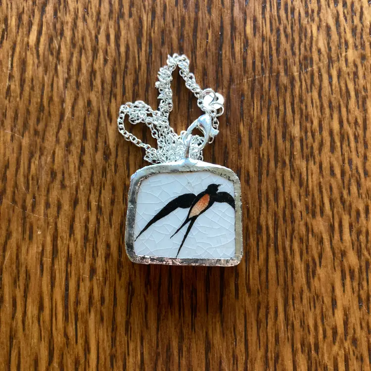 Broken Pottery Artisan Made Swallow Pendant Wells Plate Handcrafted Necklace 1 in x 1 in