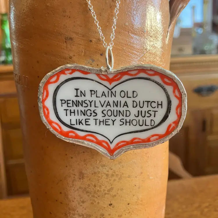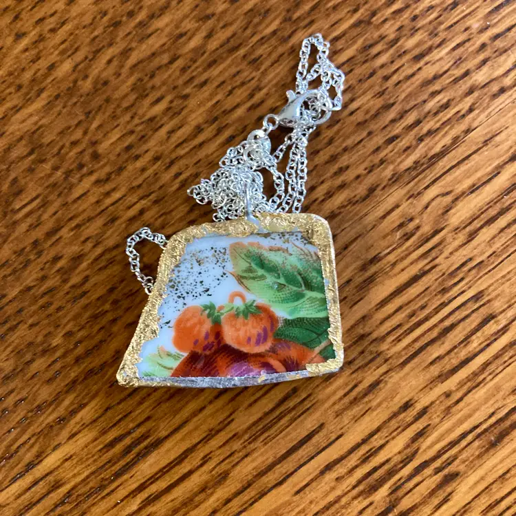 Pennsylvania Dutch Artisan Made Pendant Broken Norcrest Hand Painted Plate Handcrafted Necklace 2.5 in x 1.5 in