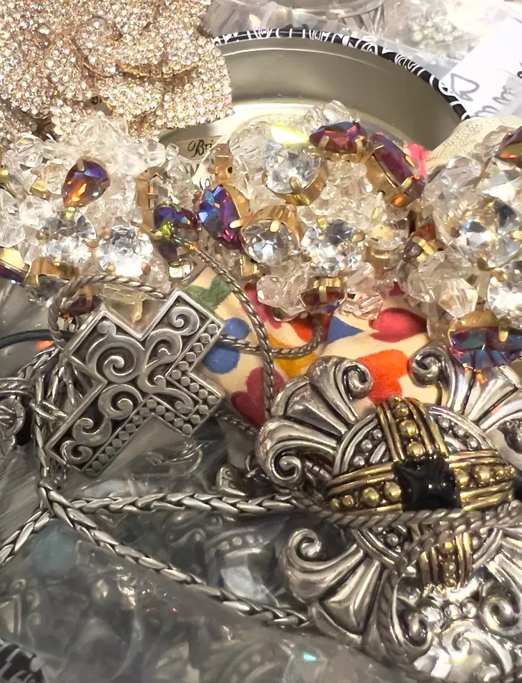 Hi beautiful people! I’m Angie…. My store is Patriotic Primitives by Angie. 🇺🇸Specializing in glass, brass, and a little sass! 🇺🇸Loving cottage core, BOHO, and eclectic styles🇺🇸🇺🇸 ✅✅DISCLOSURE: ALL POP UP SHOWS (not scheduled 🚂 train events) ARE FINAL SALES, no refunds or returns. ✅✅All items are sold “as is” at the time of the sale. ✅Be sure to take screenshots and ask questions. ✅I do the best I can to provide the best quality products however, some vintage items are 50- 75 years old and may have chips, crazing, dents, puckers, missing stones, cracks… as shown during the show. I will do my best to point these flaws out during the shows but regardless… the prices during the pop ups are drastically reduced and therefore will not be returned or refunded.✅ ✅ Thank you for visiting my store. Due to the nature of our pieces being pre-owned and/or vintage, there will likely be some light wear and tear, therefore we consider all of our pieces sold "as is." Items are listed and described based upon identifying marks, scrutiny, and research; not tested. Please study the pictures, as they are the best description. Any imperfections will have pictures. REASONABLE offers are always welcome. Feel free to reach out. If I can bundle or strike a deal, I am happy to do so!
