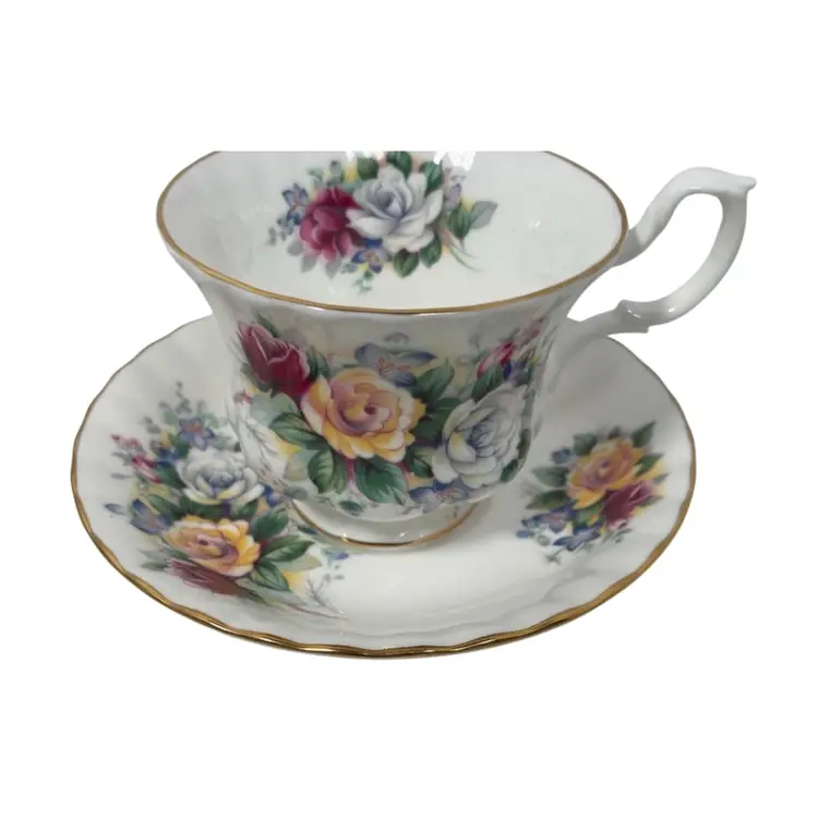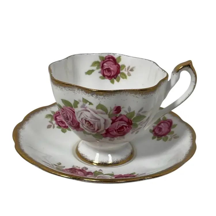 Queen Anne Triple Cabbage Rose Teacup & Saucer