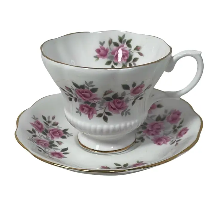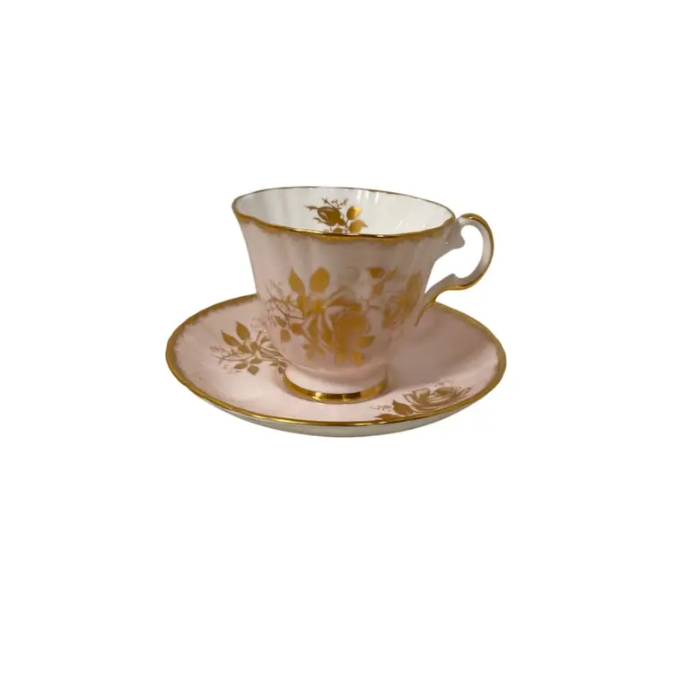 Blush Pink Gold Roses Bone China Teacup & Saucer