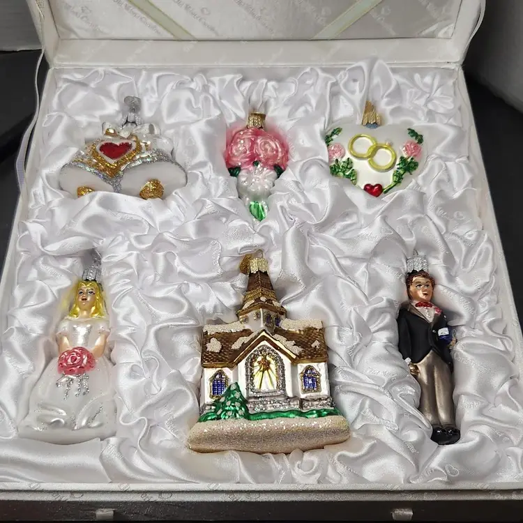 Old World Christmas Ornament Wedding Set of 6 Bride Groom Church