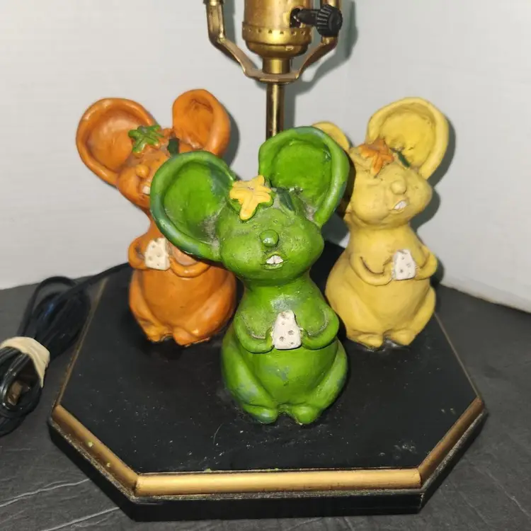 1960's 70's MCM Mice Mouse Green Yellow Orange Lamp Eating Cheese Super Cute!