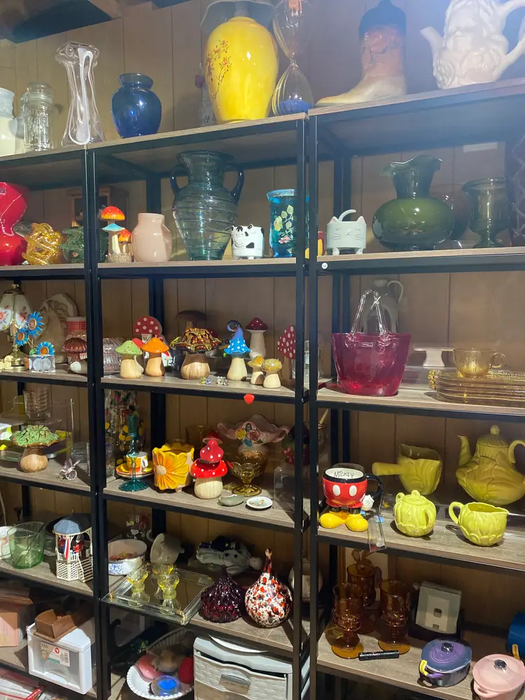 I have a love for all types of vintage and enjoy selling my overflow. My husband does lamp work ( blows glass) and makes awesome creations for me to sell.