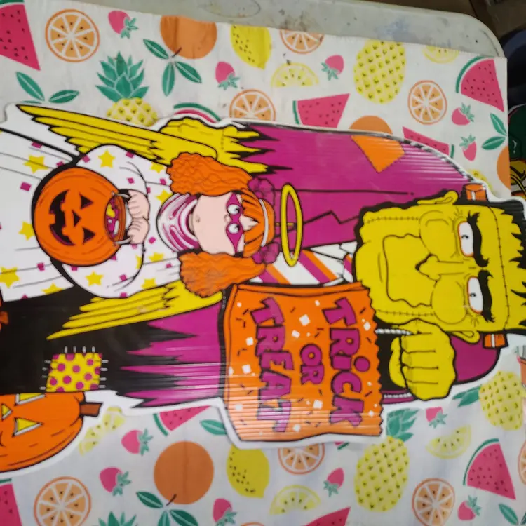 1990's Vintage Ghost Pumpkin Trick or Treat Halloween Sign Yard Art Party Decor