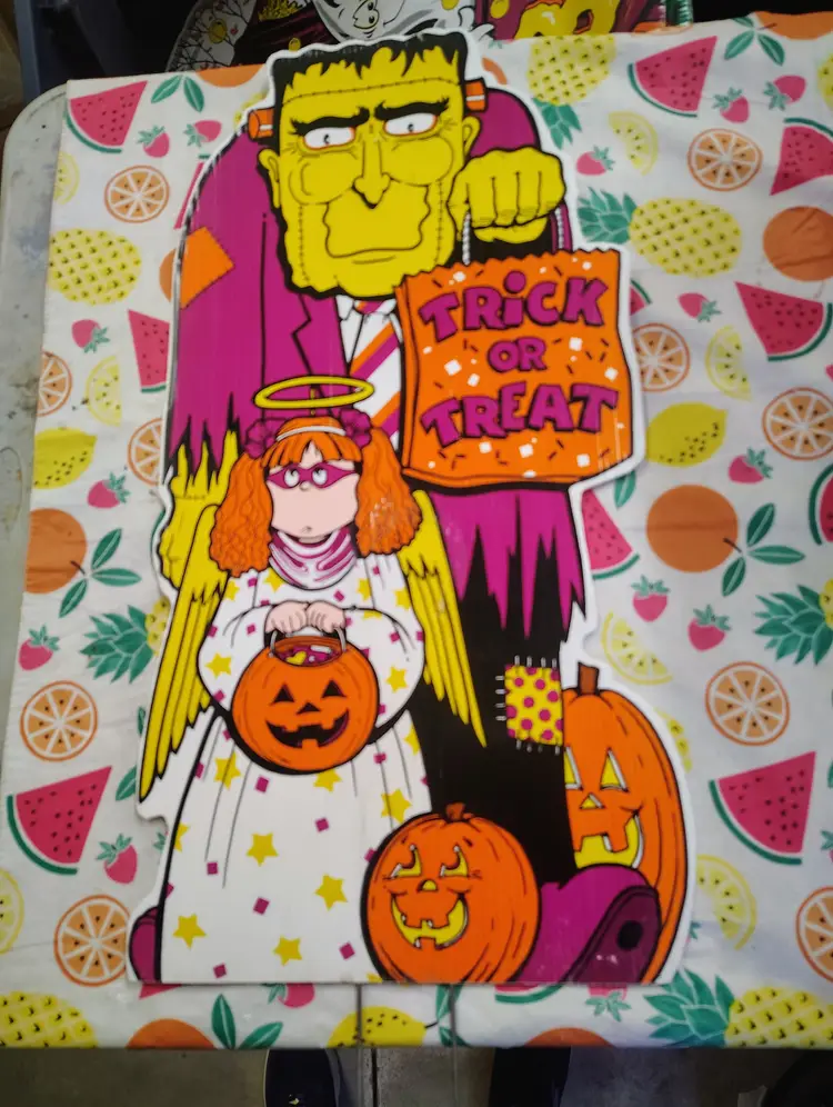 Vintage 1990s Frankenstein Trick Treat Girl Pumpkin Halloween Yard Sign Decor