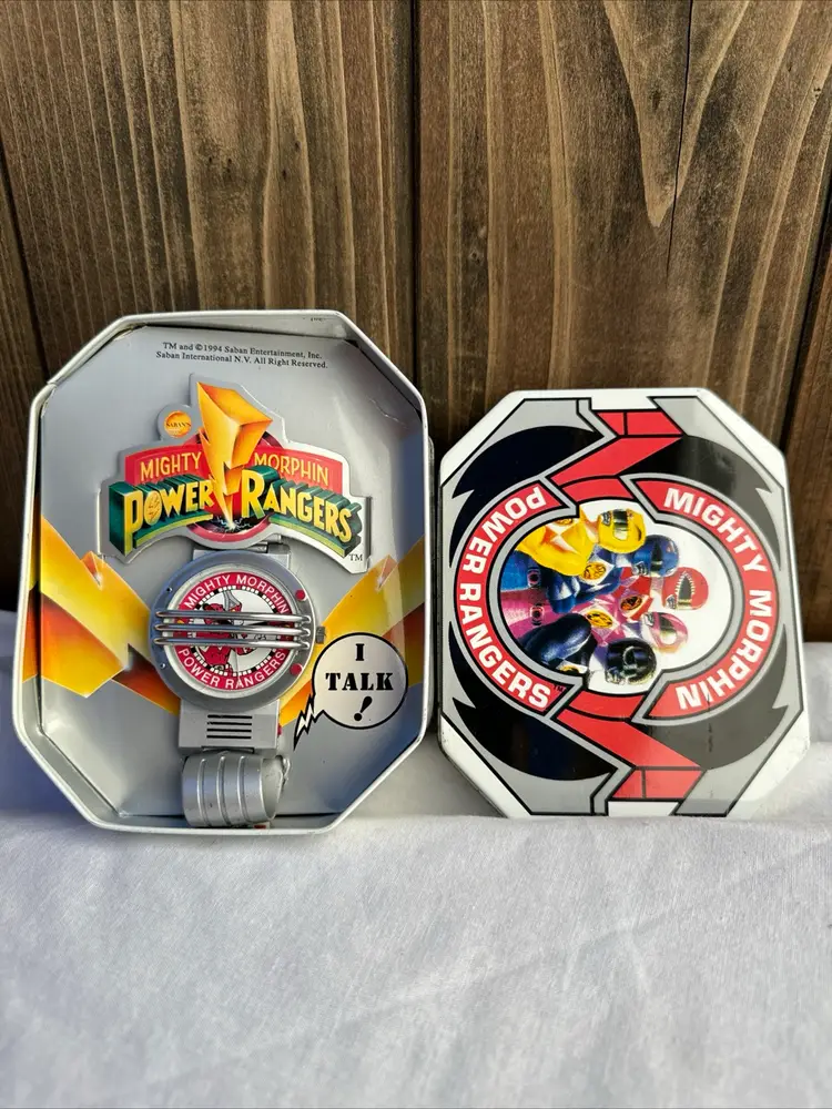 VINTAGE MIGHTY MORPHIN POWER RANGERS RED RANGER COLLECTOR'S TIN W/TALKING WATCH