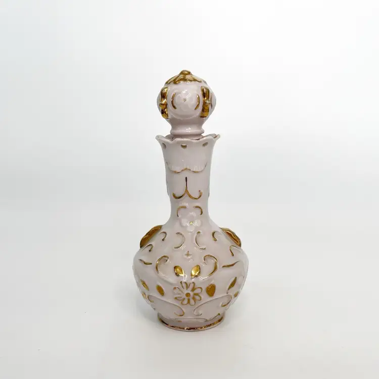 Vintage An Irice Pink Gold Perfume Bottle Hand Painted Porcelain Made In Japan